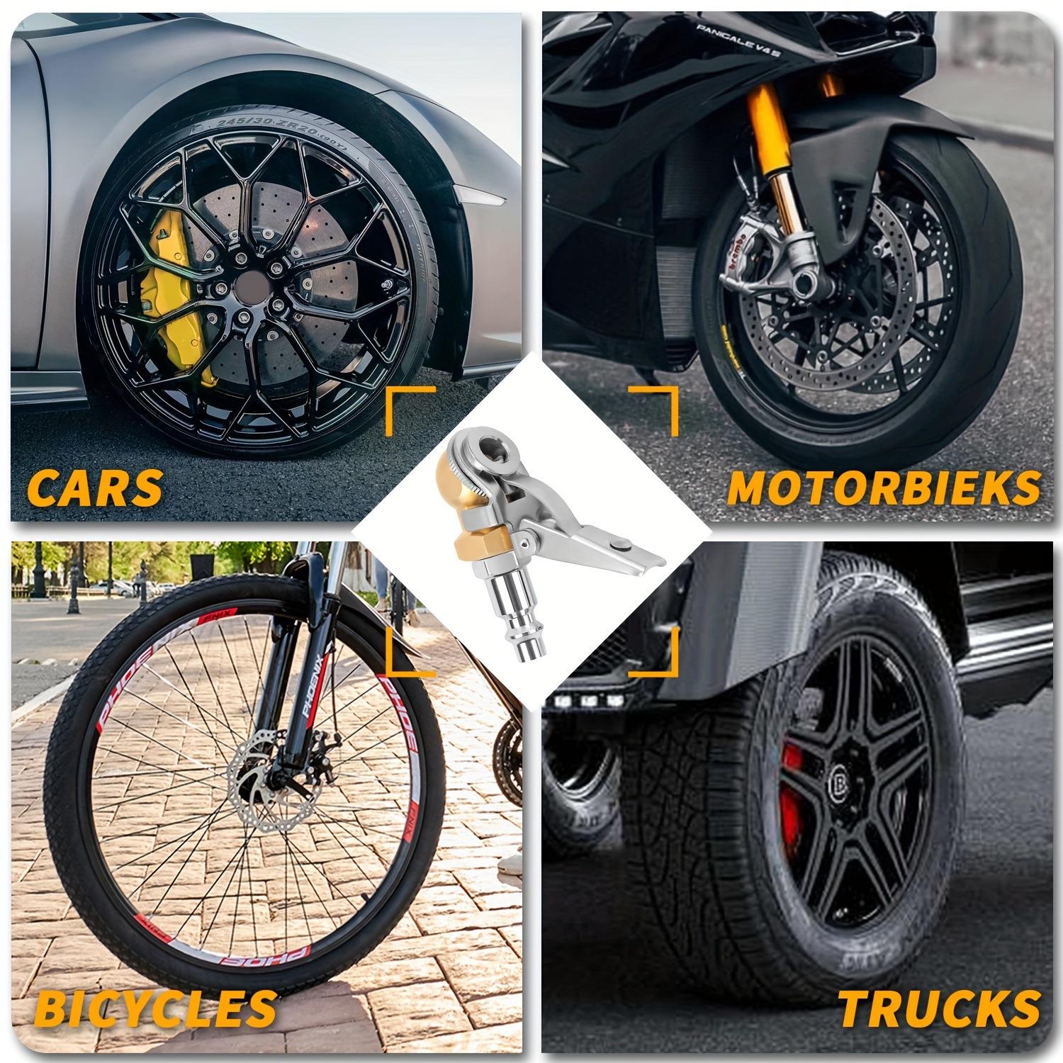 3. Locks onto the valve stem with a lever, allowing for inflation without continuous pressing.